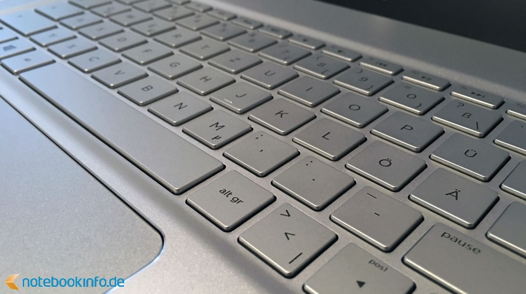 Si bien cuenta con teclas de buen tamaño, y un generoso espaciado entre las mismas, la experiencia de escritura en su teclado "en isla" no es todo lo buena que seria deseable, principalmente por el blando tacto, y el corto recorrido al pulsar.